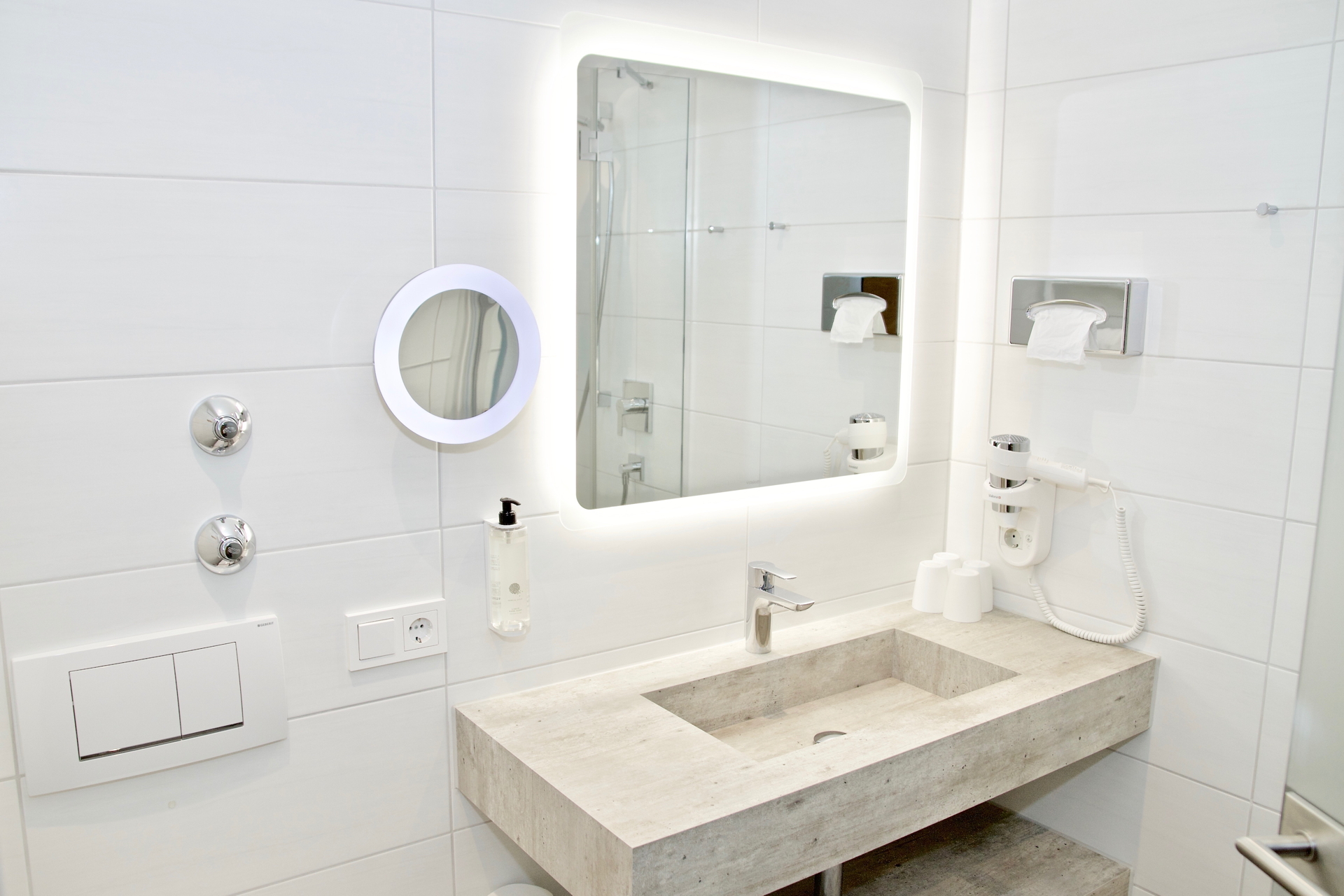 - Amenities: 43″/50" LED-HD-TV, air conditioning, alarm clock, allergy bedding, ironing station, desk, digital cable radio, digital cable TV, hairdryer, hand towel heating, Wireless transmission of media such as Netflix, Amazon, YouTube, etc. to the TV, non-smoking rooms, phone, pillow menu, safe, usb sockets with fast charging function (type A & C), wheelchair accessible shower, wheelchair accessible toilet, WIFI