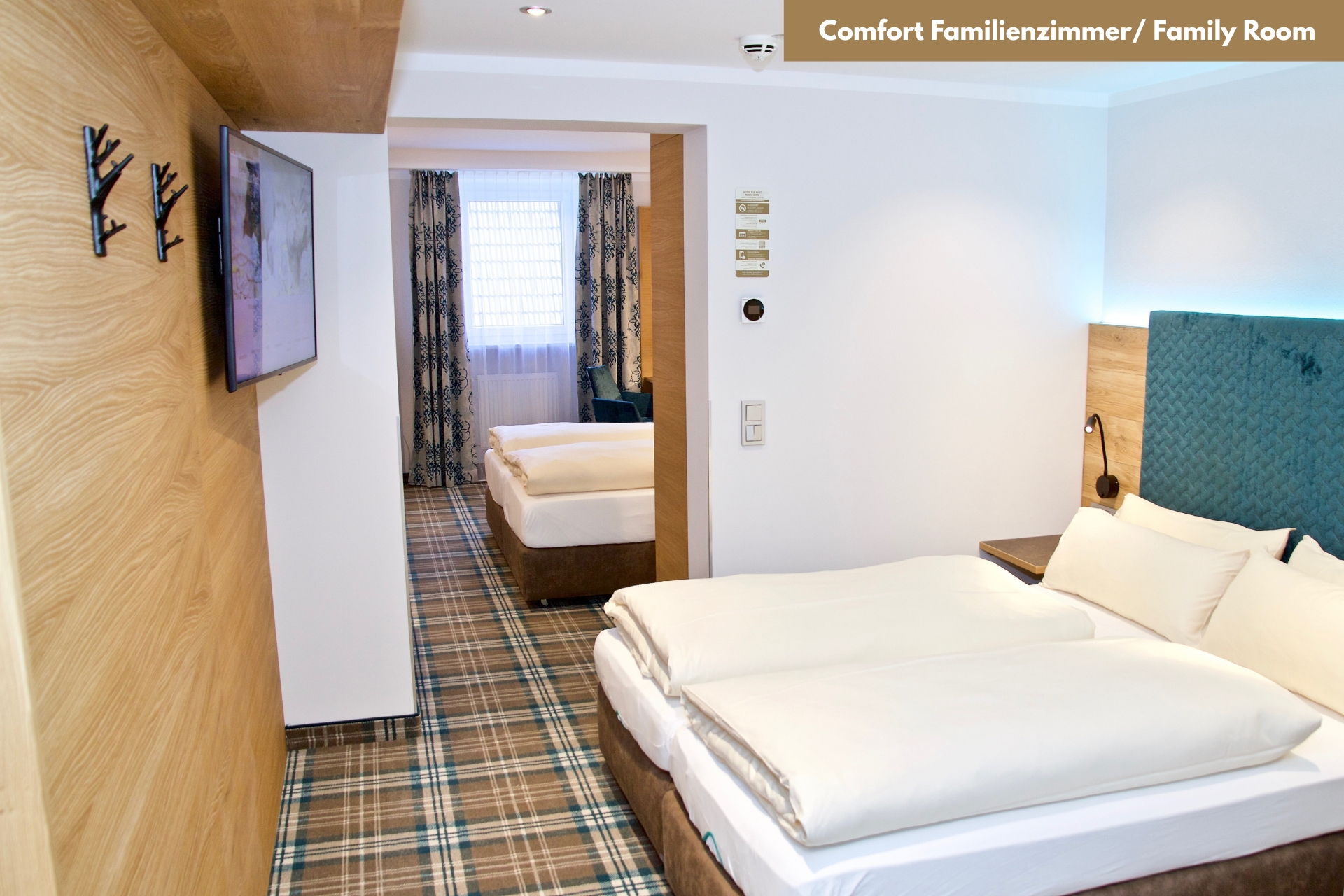 Unsere Comfort-Familienzimmer sind in zwei Schlafbereiche gegliedert, sowie funktional ausgestattet und eingerichtet.